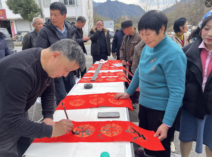 活动现场暖意融融,年味浓厚。舞台之上好戏连台、掌声不断,舞台之下暖意涌动、喜乐祥和,书法家志愿者们铺开红纸、挥毫泼墨,现场为乡亲们书写赠送春联和“福”字,红纸墨香映衬着冬日暖阳,传递出最传统、最真挚的新春祝福。整场晚会持续两个小时,现场始终洋溢着欢声笑语,暖意与年味交织。