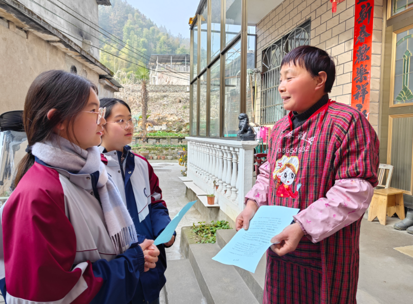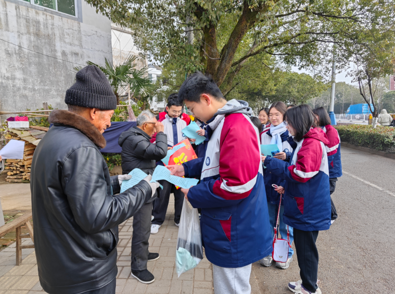 活动伊始,师生们分组分区域深入篁墩村的沿街商铺和村民家中,开展烟花爆竹禁燃禁放政策宣传。同学们手持宣传单页,耐心讲解燃放烟花爆竹对空气质量和安全隐患的影响,倡导文明过节、绿色生活的理念。临近农历新年,大家还主动向村民送上新春祝福,一声声“新年好”“阖家安康”拉近了学子与村民的距离,也将移风易俗的文明新风传递到户。