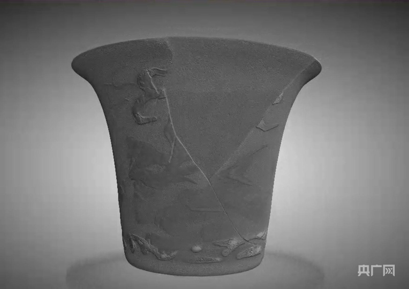 通过CT扫描后的斗彩杯,能清晰看到杯身的裂纹。(央广网发 受访者供图)