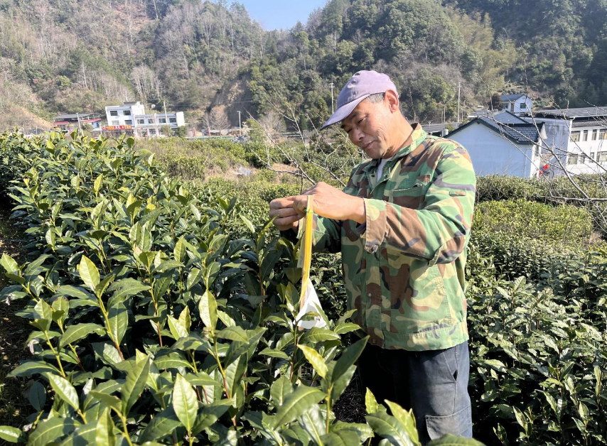“我们坚持用黄板防虫技术已有四五年,防虫效果十分显著,从源头减少了虫害侵扰,茶叶品质也稳步提升。”新明乡招桃村村民项克锋谈及绿色防控技术,直言这项举措让茶园管护更省心、茶叶收益更有保障。