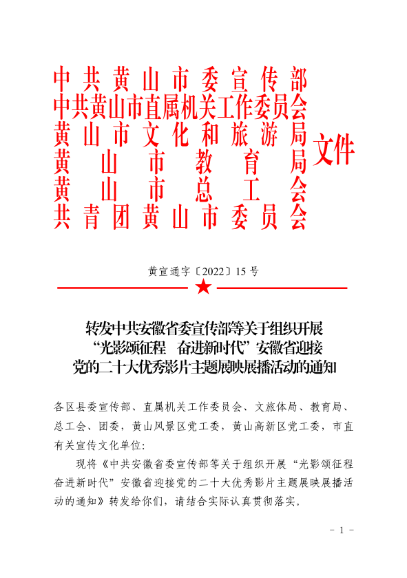 转发中共安徽省委宣传部等关于组织开展 “光影颂征程 奋进新时代”安徽省迎接 党的二十大优秀影片主题展映展播活动的通知