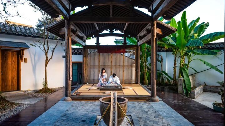 走进奕棋镇下林塘古村落,一家古徽派园林建筑风格的民宿格外引人注目。走进去,一步一景,别有洞天,古色古香的徽派建筑充满徽韵风情。