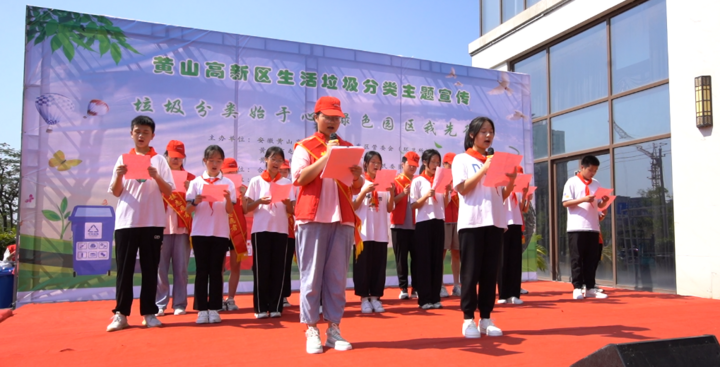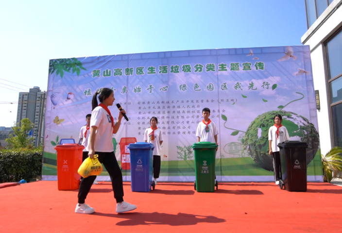 8月27日上午,“垃圾分类始于心,绿色园区我先行”主题宣传活动在黄山高新区举办。活动介绍了高新区垃圾分类点位及优势,并通过相关节目汇演,增加社区居民垃圾分类知识。